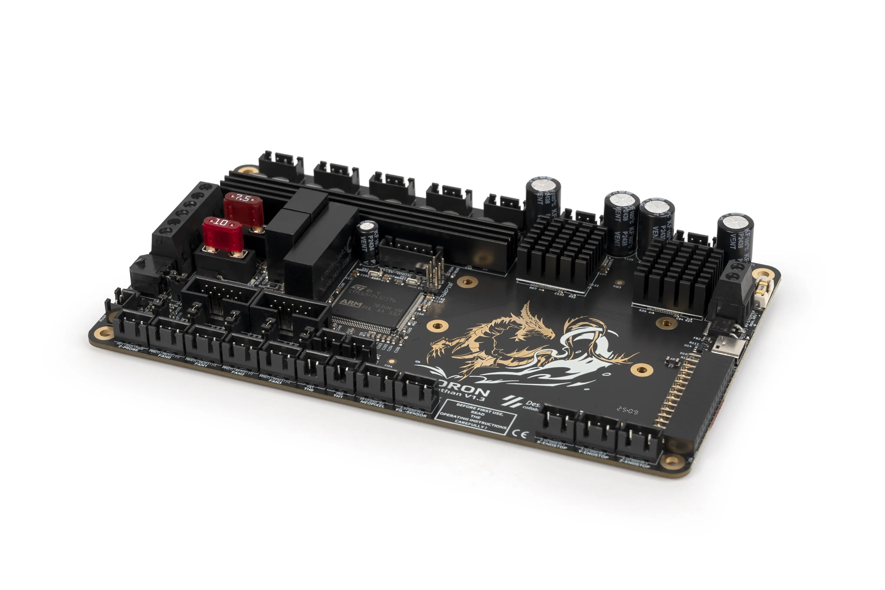 The Leviathan Extension Board is a plug and play PCB that expands the feature set of the original Leviathan controller board. It adds: 2x Integrated TMC5160 stepper drivers2x Fan ports with flyback protection, 12V/24V selectable voltage, and tachometer inputs2x Thermistor ports with 2k2 ohm pullup resistors1x Piezo BuzzerLinks:Github